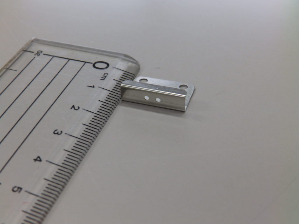 白アルマイト処理を施した品物です。板厚1ミリに皿穴をあけています。